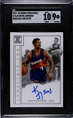 A truly elite NBA collectible — this 2017-18 Panini Impeccable Indelible Ink card features Kevin Johnson, the Phoenix Suns’ explosive All-Star point guard of the ’90s, graded SGC 9 Mint with a perfect Auto Grade 10.